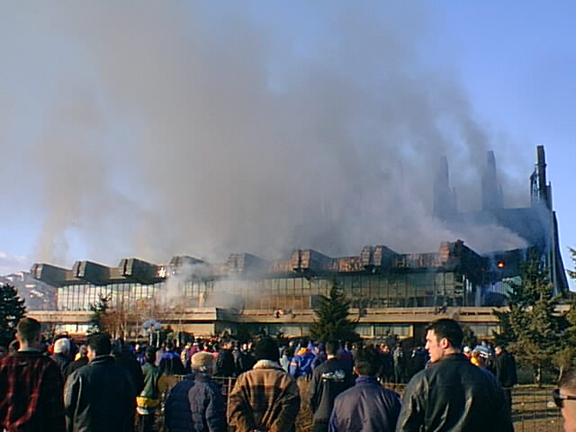This is the building that was hated by all albanians exept for those who worked in there and were spies. This is the "S.U.P" building or whats left of it after nato fucked it up with about 4 tomahawk missiles. It's not actually a monumental place, but what the hell. |