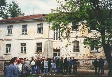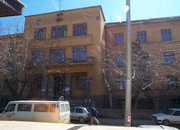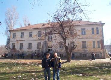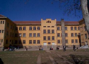 This is the High School "Xhevdet Doda". It was once a prison I think, and it's condition is so bad that one day it will fall down and probably kill all the students in it... But it's just a theory.